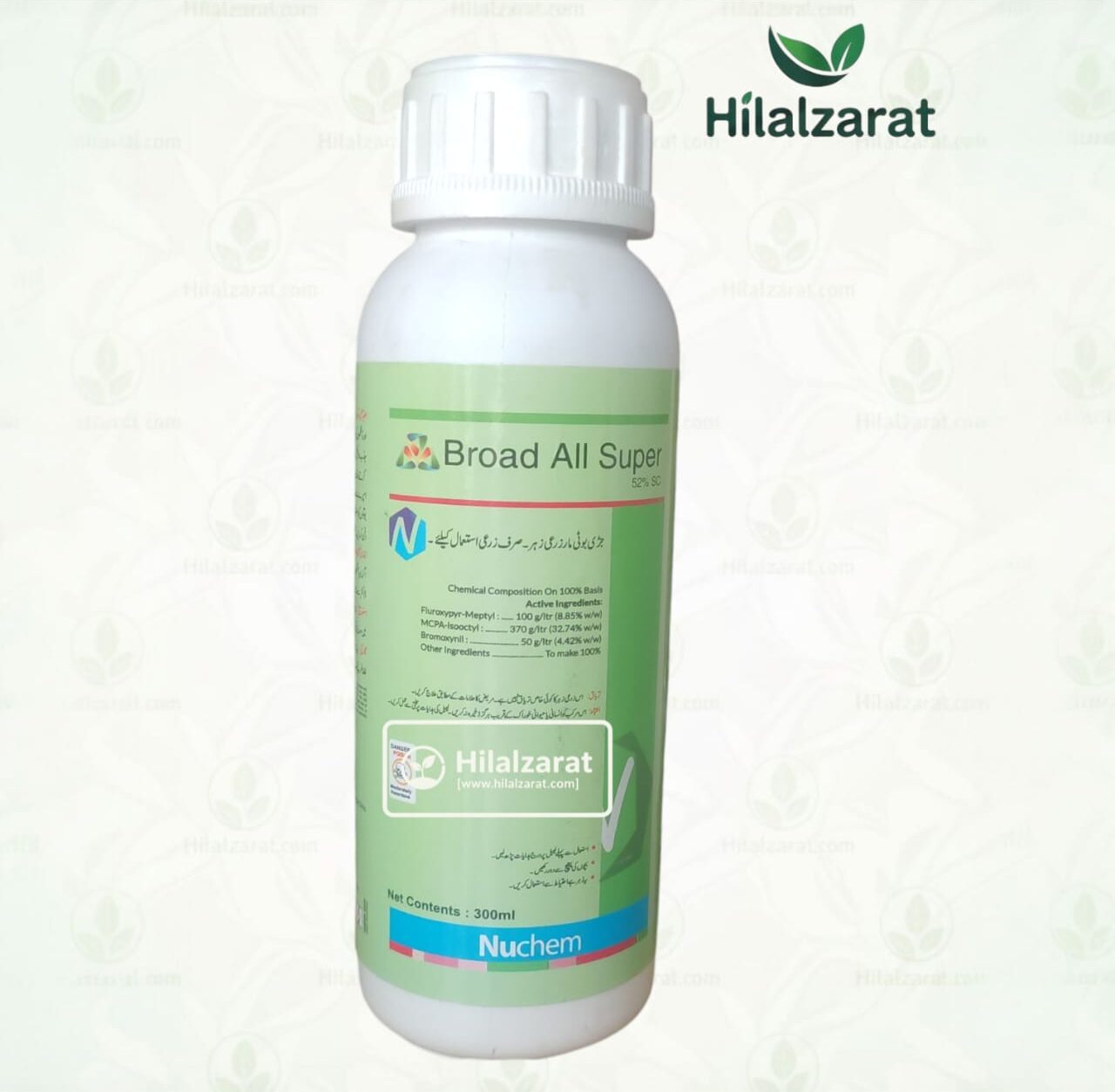 Boost your crop productivity with Broad All Super 52%, a highly effective herbicide formulated to control stubborn broadleaf weeds in agricultural fields. Manufactured by Nuchem, this advanced blend combines Fluroxypyr-Meptyl, MCPA-Isoctyl, and Bromoxynil to deliver fast, reliable, and long-lasting weed control.