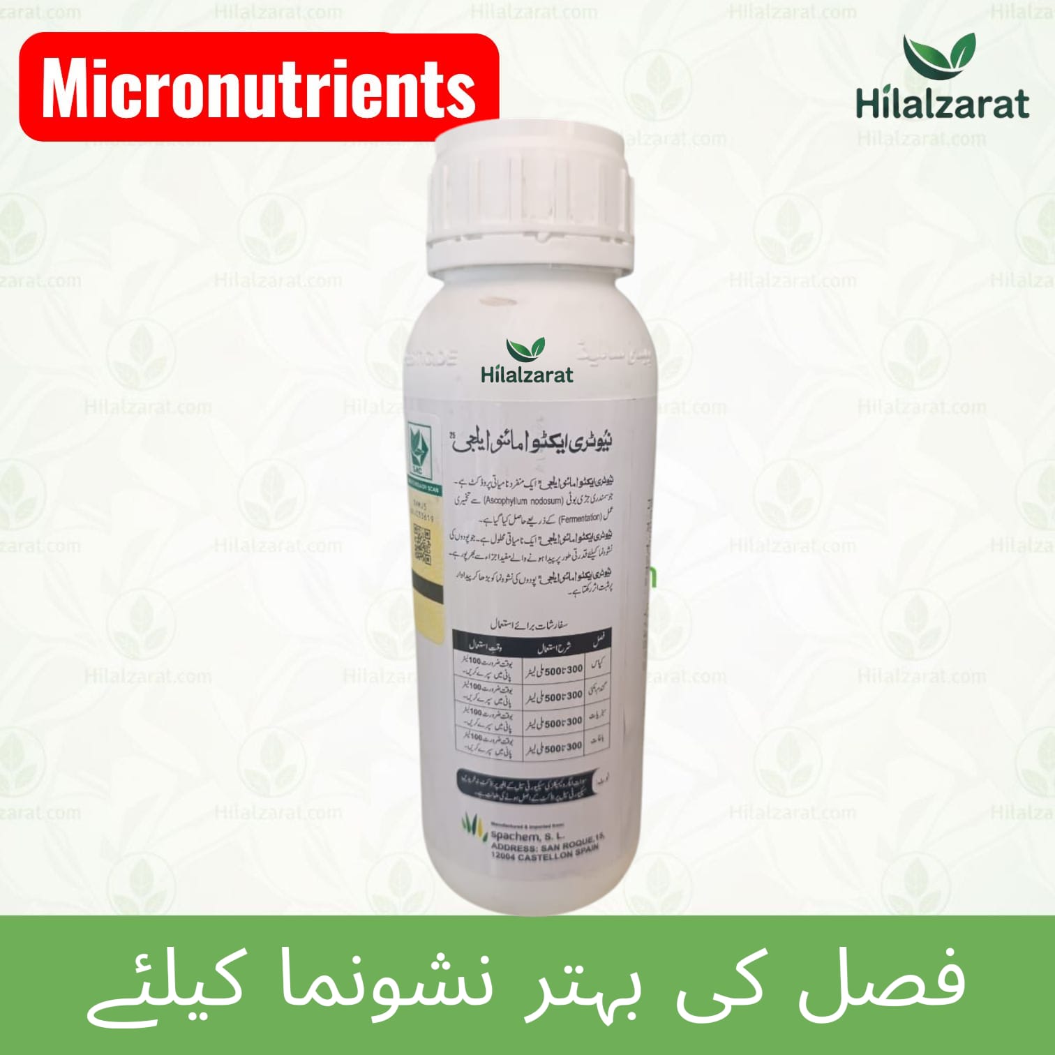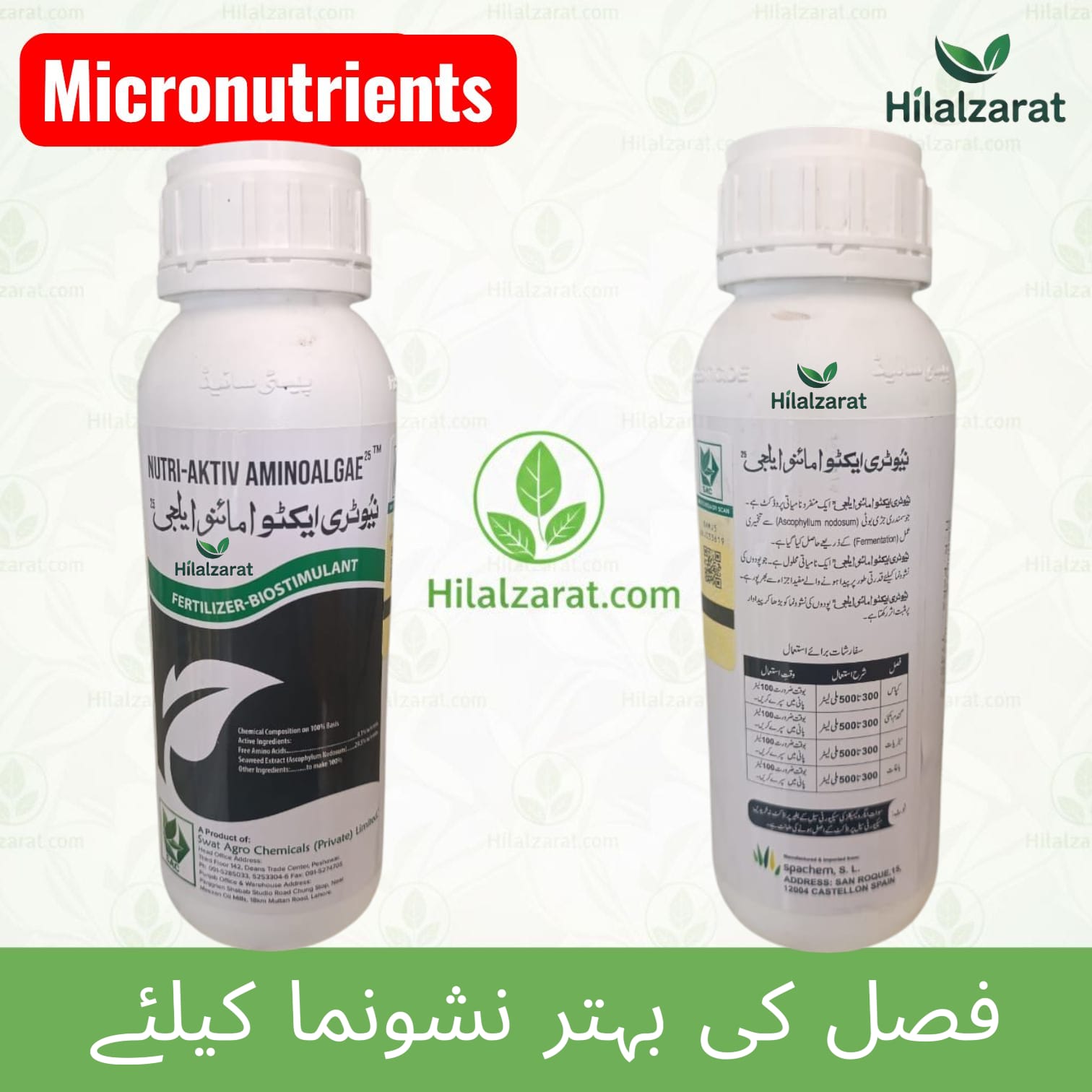 Nutri Aktiv Aminoalgae 25 (500ml) – Fertilizer Biostimulant – Swat Agro Chemicals – Amino Acid 9.1%, Seaweed Extract 29.5%, Boron, Magnesium, Nitrogen Foliar Spray From Spachem,S.L