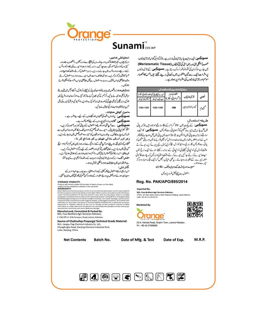 Sunami 15 WP is an advanced herbicide formulated with Clodinofop Propargyl 15% WP, designed specifically for the selective post-emergence control of grassy weeds in a variety of crops such as wheat and other cereals. Its superior formulation ensures effective and targeted action against problematic grassy weeds without harming the main crop, providing farmers with a dependable and efficient weed management solution.